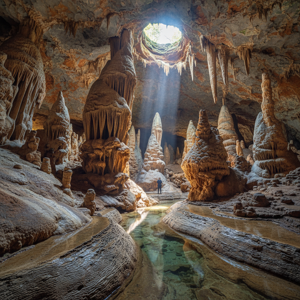 Aven Armand in the Cévennes region of southern France offers visitors one of the world's most spectacular displays of stalagmite formations, earning its nickname as the "Forest of Stalagmites" for the incredible density and variety of limestone formations that rise from the cave floor like ancient stone trees. This remarkable cave, discovered in 1897, features over 400 stalagmites in a single chamber, some reaching heights of over 100 feet, creating an underground landscape that appears almost fantastical in its beauty and complexity. The cave tour utilizes a funicular railway system that transports visitors down into the main chamber, eliminating the need for challenging climbs while providing dramatic views of the formations as they come into view. What makes Aven Armand particularly suitable for beginning cavers is the combination of spectacular geological features with excellent accessibility infrastructure—the funicular system, well-lit pathways, and strategically placed viewing platforms allow visitors to appreciate the cave's wonders without navigating difficult terrain. The cave maintains a constant temperature of 50°F throughout the year, providing comfortable conditions for exploration regardless of the surface weather, while the professional lighting system has been carefully designed to showcase the natural colors and textures of the limestone formations without causing environmental damage. The guided tours emphasize the extraordinary time scales involved in stalagmite formation, with some of the larger formations representing hundreds of thousands of years of mineral deposition, helping visitors appreciate both the patience of geological processes and the fragility of these natural sculptures. Educational components explain the precise conditions required for stalagmite formation, the role of groundwater chemistry in creating different types of formations, and the ongoing monitoring efforts that track the cave's environmental conditions to ensure preservation for future generations. The acoustic properties of the main chamber add another dimension to the experience, with guides often demonstrating how the cave's natural acoustics can amplify and modify sound in ways that seem almost magical.