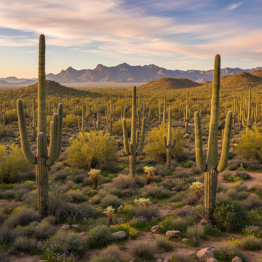 Saguaro National Park in Arizona protects the most iconic symbol of the American Southwest, where ancient saguaro cacti create cathedral-like forests in the heart of the Sonoran Desert, offering visitors an intimate encounter with one of North America's most remarkable and long-lived plant communities. These magnificent giants, which can live for over 200 years and grow to heights exceeding 40 feet, create a landscape that is both alien and deeply spiritual, where each cactus develops its own unique personality through the distinctive arrangement of its arms and the weathered character of its pleated trunk. The park is divided into two districts—Saguaro East (Rincon Mountain District) and Saguaro West (Tucson Mountain District)—each offering distinct experiences and adventures that showcase different aspects of Sonoran Desert ecology and the remarkable adaptations that allow life to flourish in this arid environment. Hiking trails wind through dense saguaro forests, including the popular Desert Discovery Trail, which provides an accessible introduction to desert ecology, and the more challenging Tanque Verde Ridge Trail, which climbs into the Rincon Mountains and offers spectacular views across the entire Tucson valley. The park comes alive during the spring wildflower season, typically from March through May, when desert marigolds, lupines, and palo verde trees create a spectacular display of color that transforms the seemingly barren landscape into a vibrant garden that attracts hummingbirds, butterflies, and other pollinators. Wildlife viewing opportunities abound, with chances to observe javelinas, coyotes, desert tortoises, and over 200 bird species, including the Gila woodpecker and gilded flicker, which nest in cavities they excavate in saguaro trunks, later providing homes for other desert creatures in a remarkable example of ecological interconnection. The park's cultural history includes evidence of human habitation dating back over 4,000 years, with Hohokam petroglyphs and archaeological sites that demonstrate the sophisticated ways indigenous peoples learned to thrive in the Sonoran Desert, knowledge that continues to inform modern conservation and desert survival techniques.